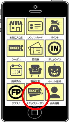 利用時は、マイページ「ステップクーポン」から、一覧を選択